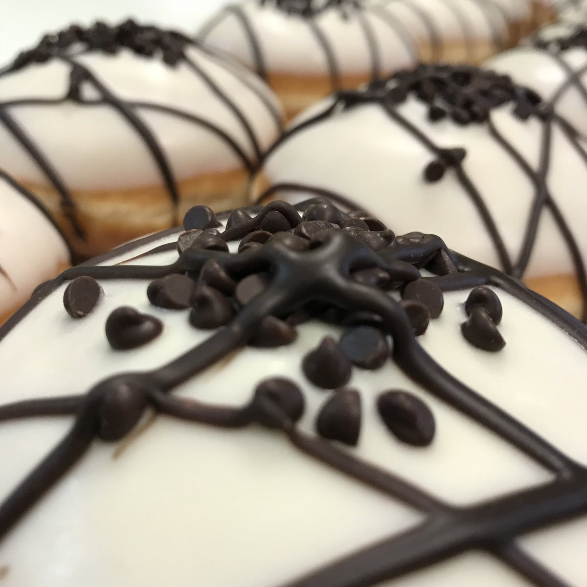 We dream in chocolate. This is their NEW WHITE CHOCOLATE DREAMCAKE DONUT - glazed and filled with white chocolateystuff. So we dreamed big and our Chocolate.